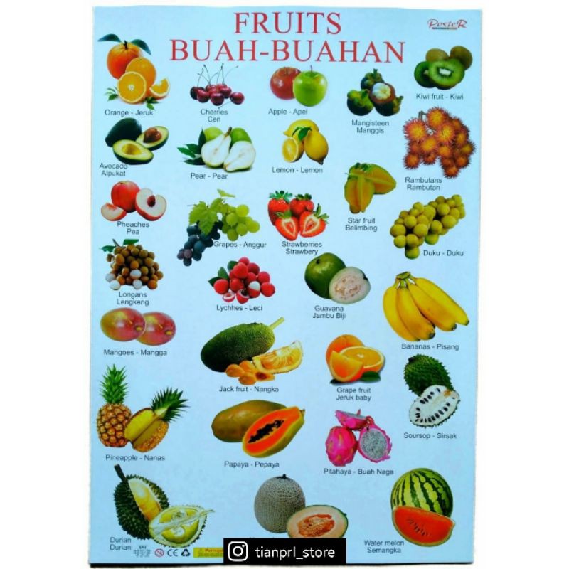 Jual Poster Belajar Berbagai Macam Buah Buahan Shopee Indonesia